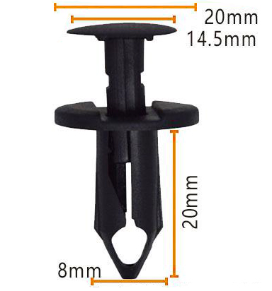 Klemmen av klippet måler 20 mm i lengde og smalner ned til en 8 mm bred base, slik at den kan passe tett på plass og opprettholde stabilitet selv under trykk. Den unike utformingen av disse klippene gjør at de kan brukes i et bredt spekter av bransjer, inkludert bilindustri, konstruksjon og produksjon.