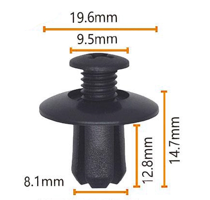 Dette universelle bilklippet er en god selger, størrelsen er nøyaktig til 0,1 mm, slik at delene av bilen din kan passe tett, bredde 19,6 mm, høyde 9,5 mm.